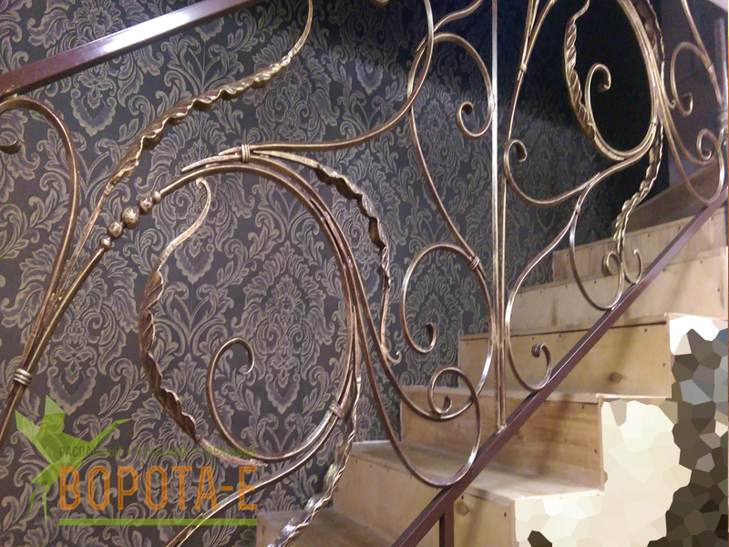 Перила с коваными листьями